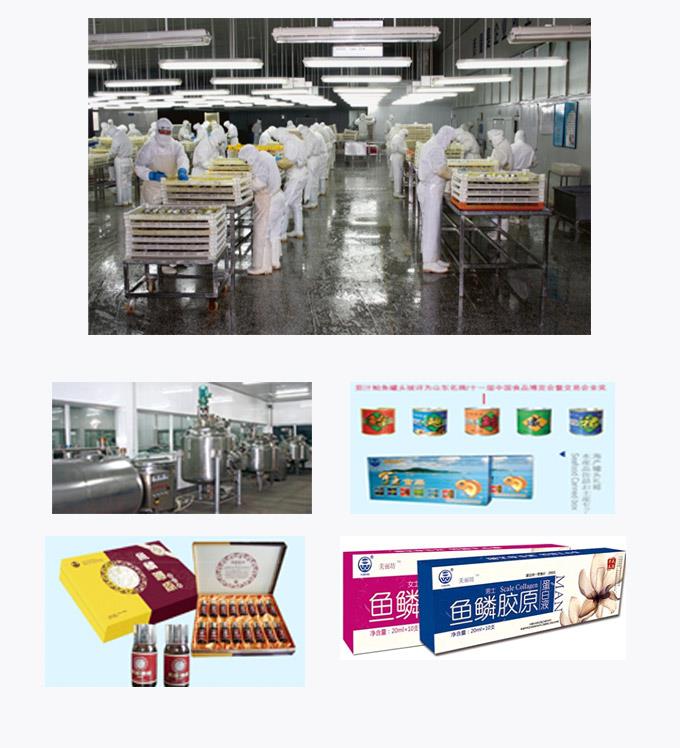 威海市宇王グループの海洋生物の工事有限會社は新型の科學技術の研究開発と加工企業(yè)と中國科學院の過程に、日本ルー研究所の協(xié)力で開発海洋食品、サプリメント。既存の各類の専門者50人、500㎡の研究室は、1500㎡の加工工場を所有し、全自動充填シール機、漢方薬の抽出缶、酵素缶、CIP自動洗浄機などの先進的な設備。年に開発海洋の食品はすべて20種類以上。同社が開発した製品がうろこ?コラーゲン液、うろこコラーゲンの柔らかいカプセル、高活性ナマコ內服液、ジンジャー內服液、魚類の缶詰、海藻類缶詰、無花果缶詰、海藻類製品などは深く國內外の専門家や消費者の好評。