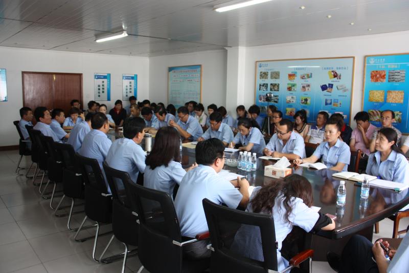7月18日,集團公司在金琳食品加工園會議室召開2015年半年工作總結會,公司領導、各單位科長、主任以上干部共60人參加了會議。