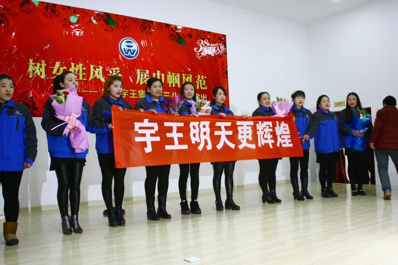 為紀念和慶祝第107屆“三八國際勞動婦女節(jié)”,3月8日宇王集團全體女工在職工禮堂隆重舉行了精彩的文藝匯演活動,活動開始前,集團公司董事長苗強對本次活動做了重要講話,表達了對公司女職工的高度贊揚和密切的關心,鼓舞、激勵女職工在崗位上發(fā)光發(fā)熱,努力工作。隨后公司副經(jīng)理劉玉華同志代表女職工做了講話,并預祝本次活動圓滿成功。