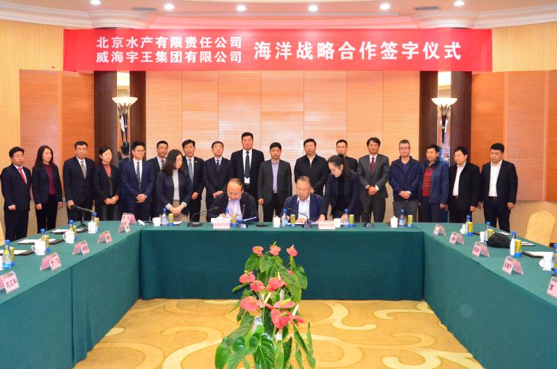 11月10日上午,威海宇王集團有限公司與北京水產有限責任公司海洋戰略合作簽字儀式在威海抱海大酒店會議大廳舉行。宇王集團董事長苗強與北京水產有限責任公司總經理李學義在合約上簽字,雙方就渠道、資源等方面深層次合作達成共識,建立了長效的合作機制。威海市環翠區人民政府常務副區長邢海波、威海市海洋與漁業局副局長李永仁在會上分別講話并向簽約雙方頒贈簽約紀念牌,威海市環翠區海洋與漁業局局長焦鵬及簽約雙方的高管干部均出席了簽約儀式。