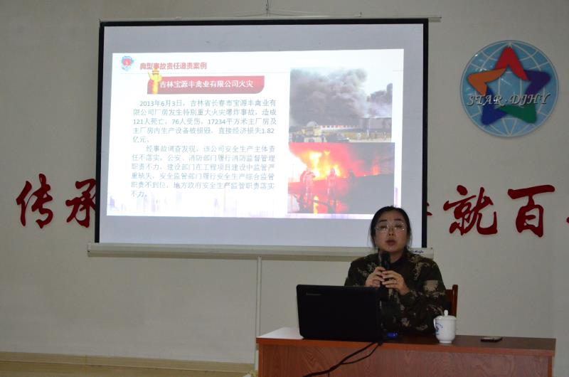 培訓(xùn)中,于警官以授課的形式,講解了火災(zāi)的基本知識,結(jié)合近年來發(fā)生的全國各地典型火災(zāi)事故案例,闡明了此次消防培訓(xùn)的重要性,詳細(xì)為職工講解了消防安全“四個能力”建設(shè)標(biāo)準(zhǔn)、消防設(shè)施、滅火器材的使用等知識,并從防火、滅火、自救逃生等方面,深入淺出的解讀了火災(zāi)發(fā)生的原因,傳授了如何報火警、如何撲救初起火災(zāi)、如何火場逃生自救等常識。